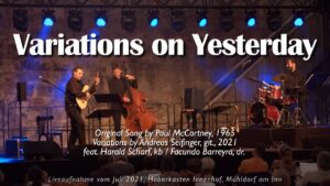 Im Juli 2021 stellten Andreas Seifinger (git) gemeinsam mit Harald Scharf (b) und Facundo Barreyra (dr.) im Mühldorfer Haberkasten Innenhof dem Publikum bereits einige Yesterday-Variationen vor. Hier geht es zum Live-Mitschnitt.